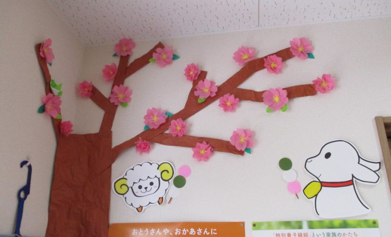 ともの玄関は一足先に桜が咲き、